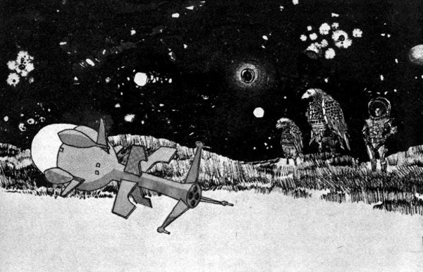 He had found the planet of Lorrane easily. The adventurer's charts were accurate. It was a dry, barren place, an old, worn-out world where only wind and sand moved, where mountains shoved their eroded peaks into the impotent sky. But Ingomar found, upon emerging from his ship, that there was another movement. Two black dots appeared far away in the sky and rapidly grew larger. He had been told that the planet was populated by an intelligent form of bird life. Two were approaching now.