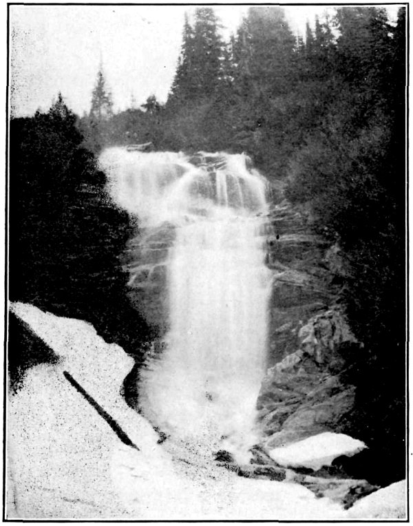 “It would be difficult to find a more beautiful example of the alpine valley. In every direction silver water-falls leap down the sides from the glaciers and melting snows of the surrounding peaks. These collect at the bottom of the valley in one central stream which bounds in foaming cascades to the little lake-bed mentioned above. It leaves this, and, continually augmented by falls from above, rushes through luxurious meadow-lands in a second series of cascades that have worn down to bedrock, showing where a thin veneer of soil is overlaying it. The alpine meadows and park-lands, as well as the open mountain slopes of the valley, are throughout the spring and summer decked with a gorgeous array of flowers of varied hues which, in places, are so profuse and brilliant that it seems as though nature had spread a carpet of rainbow colours for the delight and wonder of her visitors. In early spring, the giant Adder’s Tongue (Erythronium gigantium) covers whole acres with a brilliant yellow. These flowers are the first, and may be seen pushing their heads up through the snow. Like all spring flowers in this region, they follow the melting snows, and may be found higher up in the valley as late as August. 6 Almost coincident with them is the Globe flower (Trollius laxus), a plant of much beauty and great wealth of blossom. Next come the scarlet and crimson Painter’s Brush (Castilleia), showing everywhere in the open and on the lower slopes with a blaze of glory. Later still, the blue Larkspur (Delphinium bicolor) and purple and pink Asters replace the earlier series, the crimson and yellow Monkey-flower (Mimulus) are found in the beds of the streams and where moisture is prevalent; high up in the valley and on the alp-lands below the rocks are seen the False Heaths (Bryanthus and Cassiope) and, highest of all, the pink-flowering moss (Silene acaulis), found in magnificently flowered bunches directly below the ice. There are very many other species more rare, and just as beautiful in blossom, but of not so frequent or noticeable occurrence.