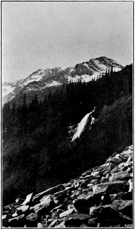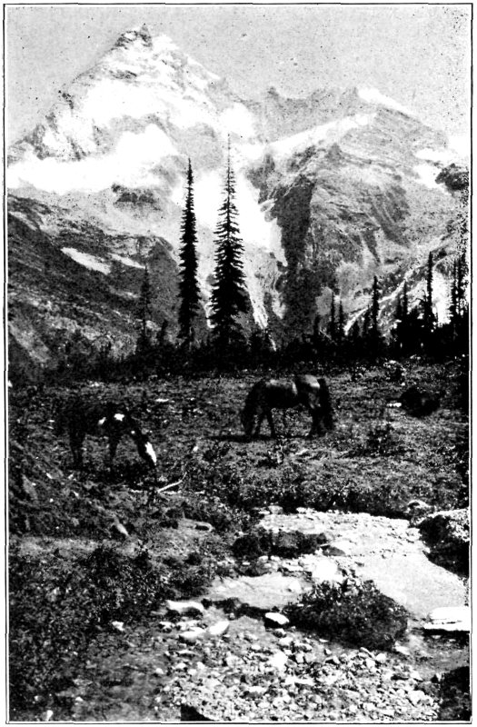 “From a natural history point of view, the upper valley is exceptional, due largely to the absence of visitors in the past. The Rocky Mountain goat (Haplocerus montanus) may be seen frequently, and his tracks are everywhere along the heights. During one of our visits a grizzly bear (Ursus ferox) was killed by Deutschman. The black bear (Ursus americana) is plentiful at the head of bear creek across Baloo pass, and it may be safely assumed that he does not fail to visit Cougar valley. Of the smaller mammals, the hoary marmot or whistler (Arctomys Columbianus) is plentiful in both the upper and lower valley, and is here found in large numbers, larger in size and giving forth a louder and more shrill whistle than in the main range of the Rockies. Its startling note is very human and resembles much the noise that delights the heart of the small boy, produced 8 by placing the fingers between the lips. Say’s squirrel (Spermophilus lateralis) and Parry’s marmot (Spermophilus Parryi) are also found, the latter in great numbers. The Little Chief hare (Logomys princeps) is frequently seen disporting itself among the rocks, and its comical antics and quaint squeak, resembling that of a toy rabbit, are very amusing.