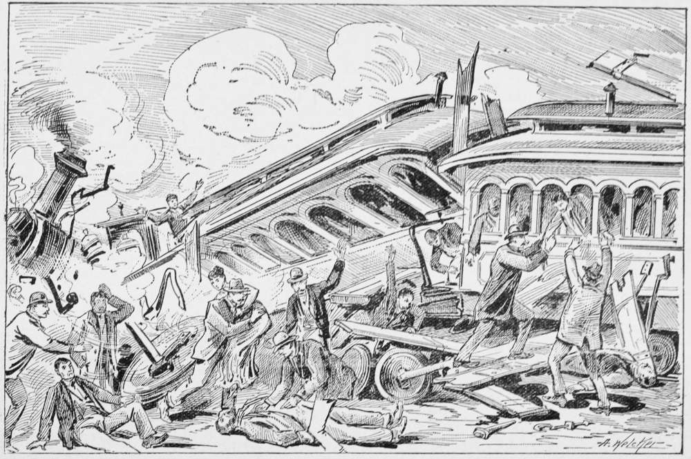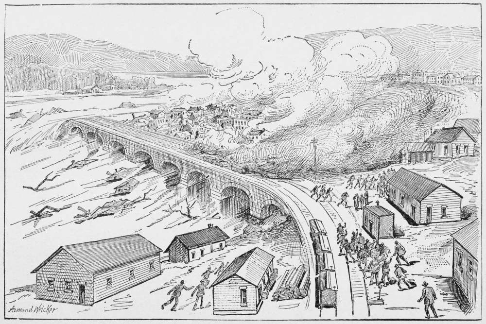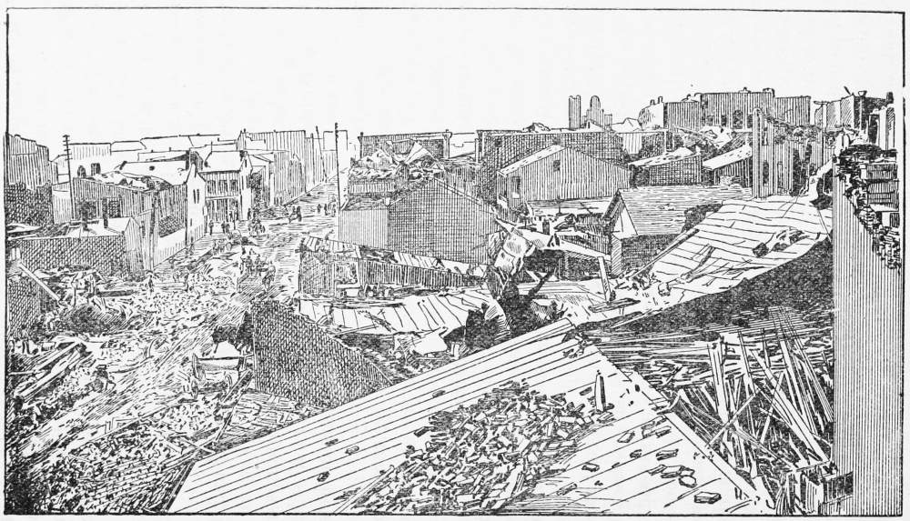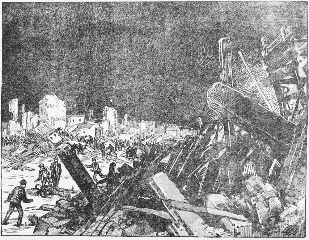 | The dam system of India—American “cheap goods and haste"—The Little Conemaugh Valley—Heavy rains—Johnstown flooded—The artificial lake—A poor dam—No uneasiness—How the water would move—The dam breaks—Terrible rush of the flood—An engine chased—A warning whistle—Locomotives hurled about like toys—Flying for life—Escapes and losses | 324 |