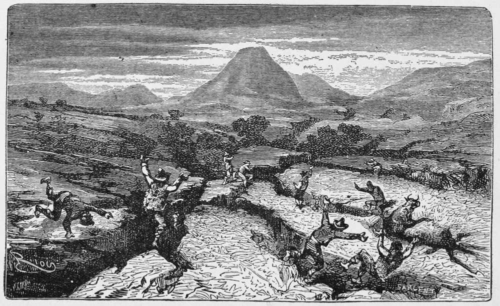 One of the most ingenious apparatus for observing the vibrations of the soil is that constructed by M. d’Abbadie, at his observatory near the Pyrenees. A conical cavity forty-six feet deep is excavated in the solid rock. At the bottom is a basin of mercury. A long-focus lens over this reflects upon the surface of the ground the image of{599} the metal below. The slightest tremor is carefully examined by a microscope. In short, this ingenious Frenchman has applied the reflecting telescope to the observation of the interior of the earth.