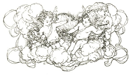 At sight of her, she was so lovely, you might well have supposed that some bright being of the skies had floated down to earth and there dropped [Pg 12]asleep after her long journey. For her swoon had not taken away the warm tints of her complexion: her cheeks were like carnations, her lips like coral: and though her eyes were closed and the long lashes would not lift, her soft breathing told that she was not dead. The King commanded them all to leave her and let her sleep in peace until the hour of her awakening should arrive.