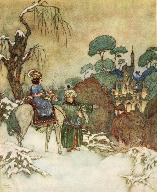 Of all the volumes in the Cabinet, possibly the most famous are the first and second, containing the fairy tales of Charles Perrault and Madame d'Aulnoy, and vols. 7–11, containing M. Galland's version (so much better than any translation) of The Arabian Nights. I hope that one of those days Mr. Dulac will lay the public under debt by illustrating all these, and the stories of Antony Hamilton to boot. Meanwhile, here are three of the most famous tales from Perrault's wallet, and one, the evergreen Beauty and the Beast, by an almost forgotten authoress, Madame de Villeneuve.