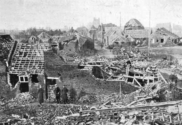 | Damage caused by a 17-inch shell in Poperinghe, April, 1915 | 150 |