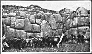 The story is somewhat as follows. At a distance from Cuzco is a place called “Tampu-tocco” (“House of the Windows”). This was long considered to be identical with “Paccari-tampu” (päk´-kä-ree-tam´-poo) (“House of the Dawn”), but the explorations and study of Dr. Bingham have shown that the evidence is in favor of his statement that Machu Picchu is Tampu-tocco. From this locality, at a date placed by students somewhere between 950 B. C. and 200 A. D., came four brothers accompanied by four sisters. Their leader, Manco (män´-ko) (the princely), succeeded in making away with his three brothers, so that at length, on their arrival at Cuzco, where the golden rod which this Manco also carried sank into the ground, the first Inca and his sisters were able to found their kingdom without rivals. Under the leadership of Manco and his successors, sometimes known as “Pre-Megaliths,” the empire grew. In the seventeenth or nineteenth reign a change in dynasty took place, and thenceforth the megalithic monarchs, who were often distinguished and skilful astrologers and reformers, ruled with the title of Amauta (ä-mä-oo´-tä).