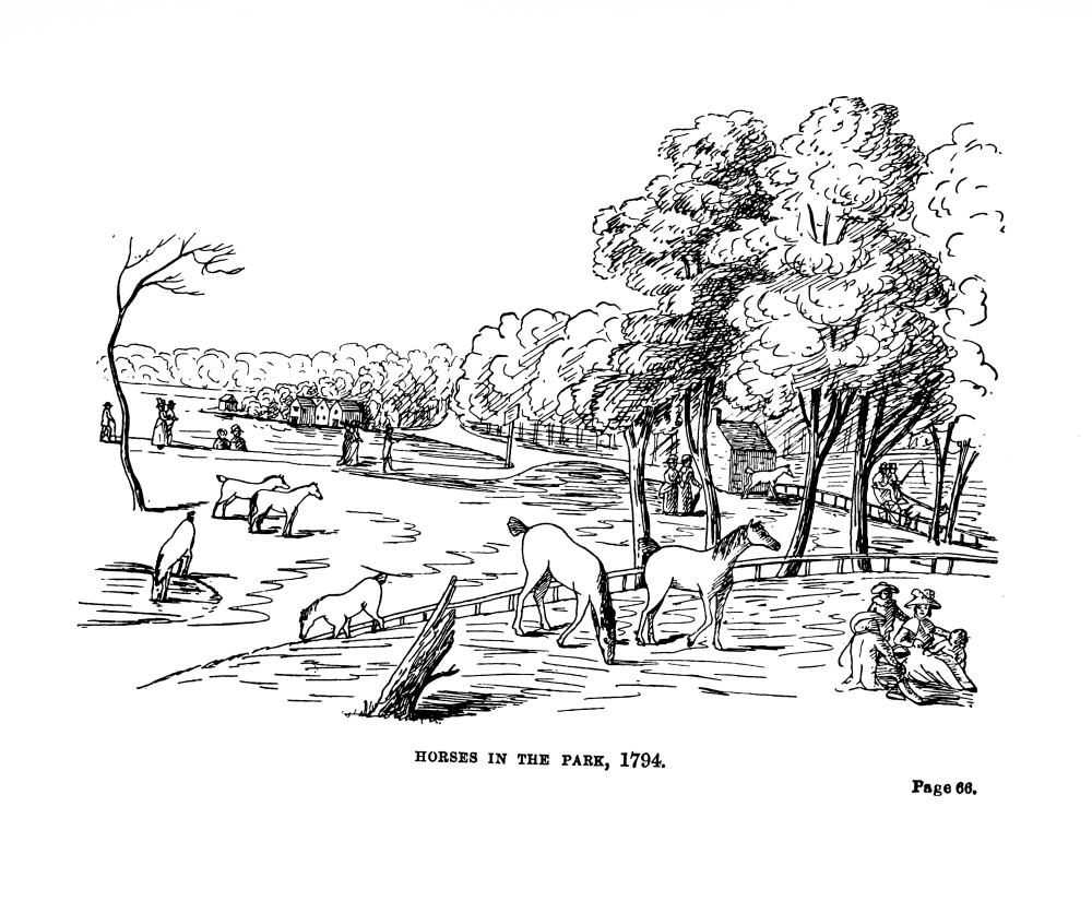 | Royal Humane Society’s Receiving House—Boats and bathing—The Dell—Chelsea Water Works reservoir—Walnut-trees—Flower-walk—Military executions—The Magazine, Whip, Four-in-hand and Coaching Clubs—Their dress—Satire on Coaching—The Park as a military centre—The first review—Fort at Hyde Park Corner—Guard-house—Camp in Hyde Park—Insubordinate troops | 120 |
