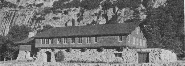 Big Trees Lodge.—In the Mariposa Grove of Big Trees, 35 miles from Yosemite Valley. European plan. Open approximately June to September. A new building of unusual charm and comfort with accommodations for 24 guests. Four bedrooms have private bath; all have hot and cold running water. The cafeteria has an outdoor terrace. Rates, $2.50 to $5 per person daily—less discounts.