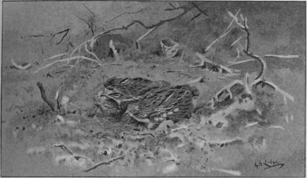 Pheasants are sometimes very noisy and sometimes quite silent in roosting, and this is just one of those differences which might be thought to depend on the weather. For some time it seemed to me as if a sudden sharp frost, or a fall of snow, made the birds clamorous, but hardly had I got this fixed, as a rule, in my mind, when there came a flagrant contradiction of it, and such contradictions were soon as numerous as the supporting illustrations. I noticed, too, that on the most vociferous nights some birds would be silent, whilst even on the most silent ones, one or two were sure to be noisy, so that I soon came to think that if their conduct in this respect did not depend, purely, on personal caprice, it at least depended on something beyond one’s power of finding out. The cries of all sorts of birds are supposed to have something to do with the 7 weather, but I believe that any one who set himself seriously to test this theory would soon feel like substituting “nothing” for “something” in the statement of the proposition. It is much as with Sir Robert Redgauntlet’s jackanape, I suspect—“ran about the haill castle chattering, and yowling, and pinching, and biting folk, specially before ill weather or disturbances in the state.” Every one knows the loud trumpety note, as I call it, with which a pheasant flies up on to its perch, for the night. It is a tremendous clamour, and continues, sometimes, for a long time after the bird is settled. But sometimes, after each loud flourish, there comes an answer from another bird, which is quite in an undertone; in fact a different class of sound altogether, brief, and without the harsh resonance of the other, so that you would not take it to be the cry of a pheasant at all were it not always in immediate response to the loud one. It proceeds, too, from the same spot or thereabouts. What, precisely, is the meaning of this soft answering note? What is the state of mind of the bird uttering it, and by which of the sexes is it uttered? It is the cock that makes the loud trumpeting, and were another cock to answer this, one would expect him to do so in a similar manner. It is in April that my attention has been more particularly drawn to this after-sound, so that, though early in the month, one may suppose the male pheasant to have mated with at least a part of his harem. One would hardly expect, however, to find a polygamous bird on terms of affectionate connubiality with one or other of his wives, and yet this little duet reminds me, strongly, of what one 8 may often hear, sitting in the woods, when wood-pigeons are cooing in the spring. Almost always they are invisible, and it is by the ear, alone, that one must judge of what is going on. Everywhere comes the familiar “Roo, coo, oo, oo-oo,” and this, if you are not very close, is all you hear, and it suggests that one bird is sitting alone—at least alone in its tree, though answered perhaps from another. Sometimes, however, one happens to be at the foot of the tree oneself, and then, if one listens attentively, one will generally hear a single note, much lower, and even softer than the other which precedes it, a long-drawn, hoarse—but sweetly, tenderly hoarse—“oo.” The instant this has been uttered, comes the note we know, the two tones being different, and suggesting—which, I believe, is the case—that the first utterance is the tender avowal of the one bird, the next the instant and impassioned response of the other.