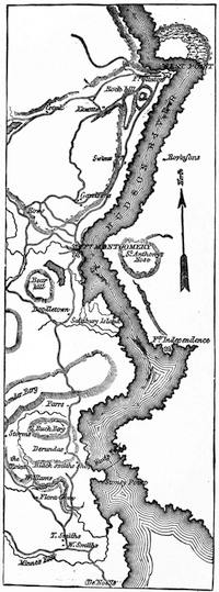 (3.) Setting out for Vincennes on the 5th of February, 1779, Clark says: "We crossed the Kaskaskia River with 170 men" (Dillon, p. 139). Major Bowman, in his journal of the same date, wrote: "About three o'clock we crossed the Kaskaskia with our baggage, and marched about a league from town" (p. 100). Crossing the Kaskaskia would have been unnecessary if they had been quartered on the site of the old fort.