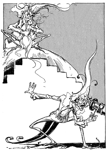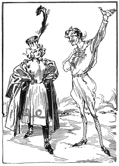 “Excuse me, please,” said Jo Cone. “I am a bad fighter. My good wife conquered me years ago, for she can fight better than I. Take her, Your Majesty, instead of me, and I’ll bless you for the favor.”