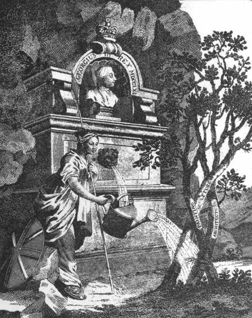 "First, the Genius of the place 'tells the waters,' or only simply gives directions: then he 'helps the ambitious hill,' or is a fellow-labourer: then again, he 'scoops the circling theatre,' or works alone, or in chief. Afterwards, rising fast in our idea of dignity, he 'calls in the country,' alluding to the orders of princes in their progress, when accustomed to display all their state and magnificence. His character then grows sacred, 'he joins willing woods,' a metaphor taken from one of the offices of the priesthood, till at length he becomes a divinity, and creates, and presides over the whole."—Warburton's edit. of Pope, 1752, vol. iii. p. 285.