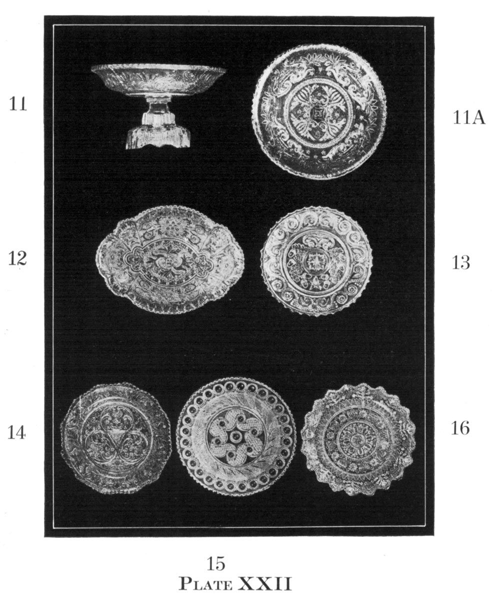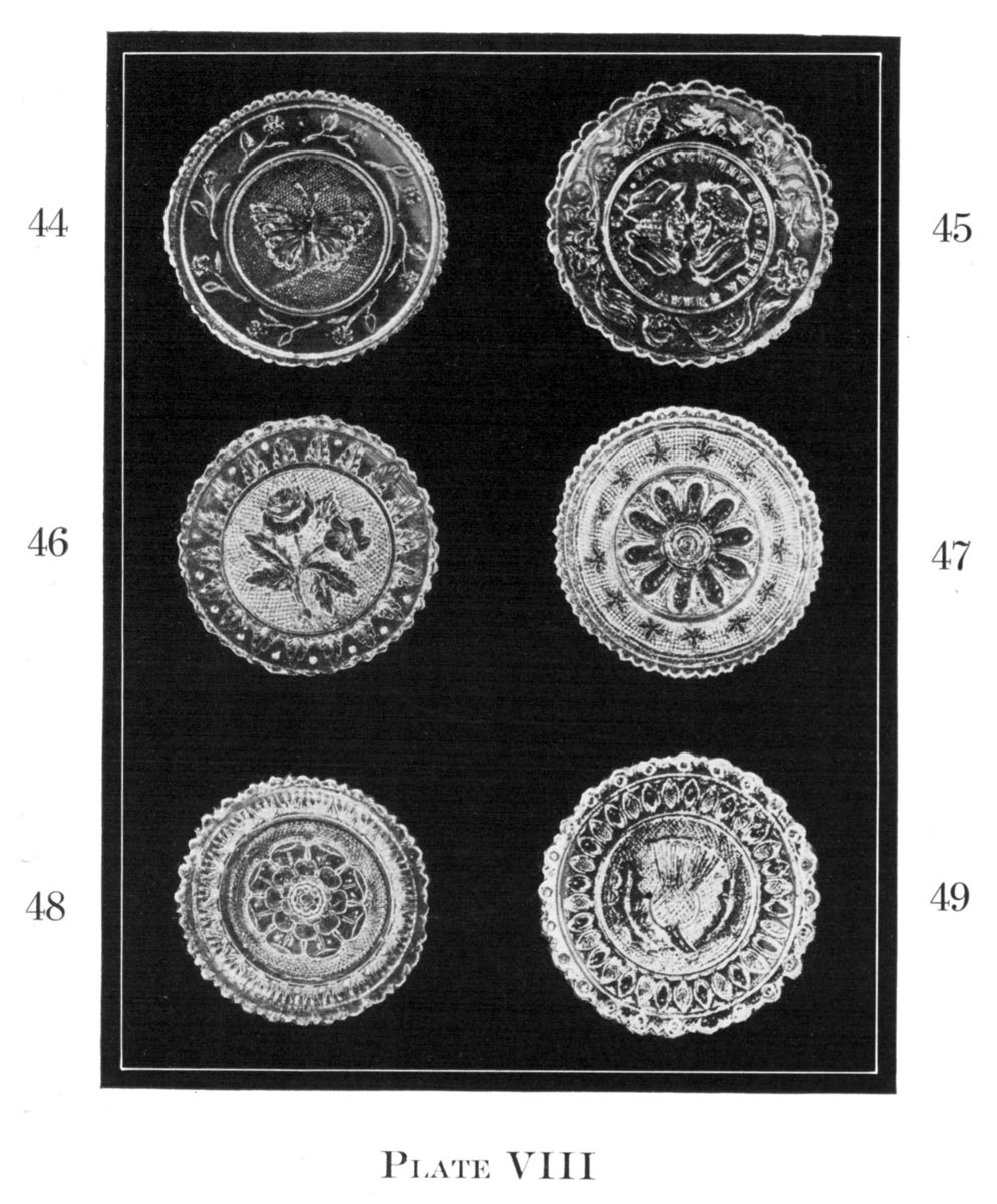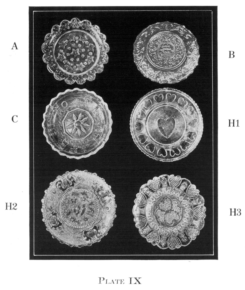 As pressed glass was the main product of the Sandwich works the few blown specimens of the factory will be taken up by the author in a separate volume dealing with the blown pitchers, plates, flips, jars, and balls blown at Willington, Westford, New London, Stoddard, Lyndeboro, Keene, and Chelmsford.