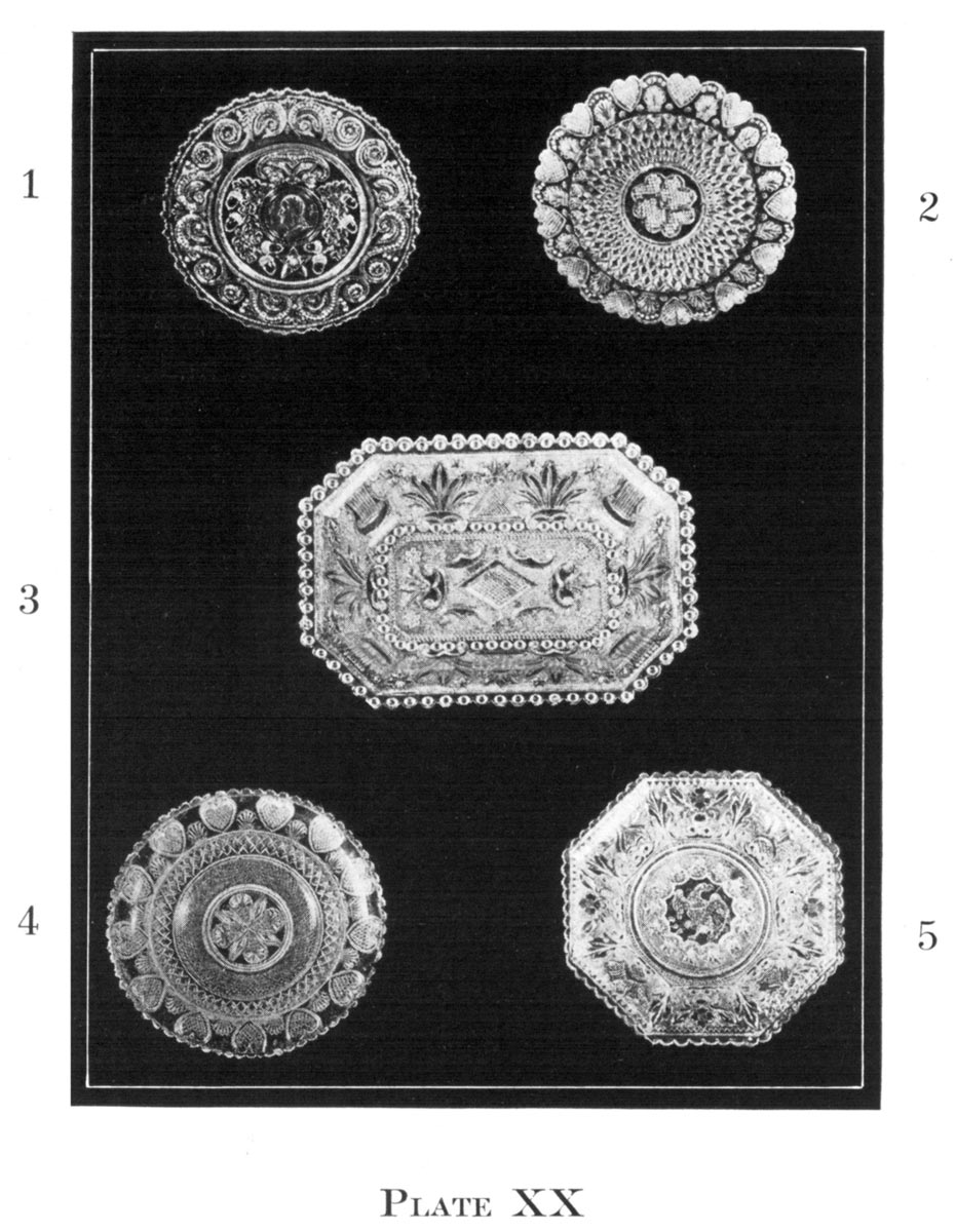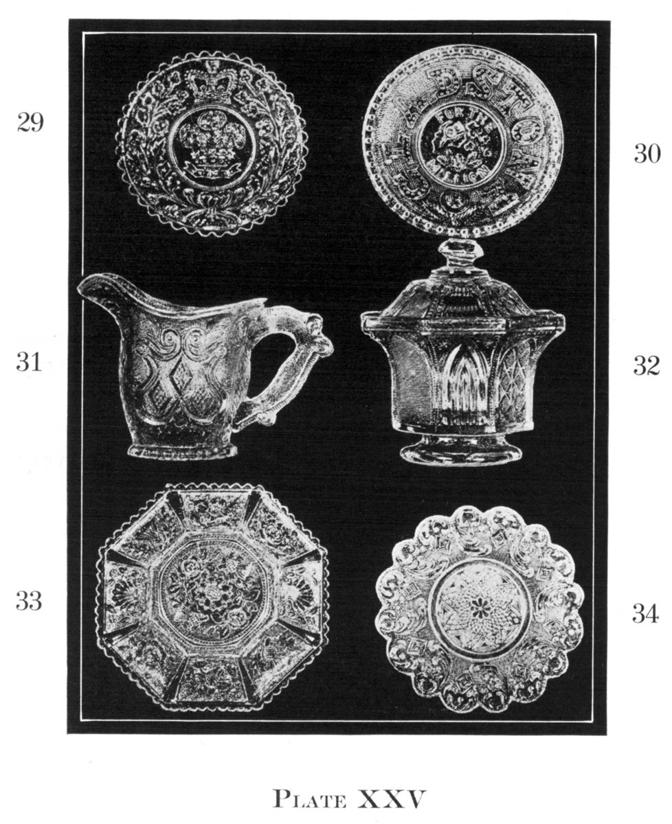 No mention is made in this volume of the endless President Garfield, railroad trains, puss in boots, and Venus designs whose name is Legion and without whose presence the cabinet of the true collector will not suffer, such pieces looking entirely out of place on the shelves with early Sandwich.