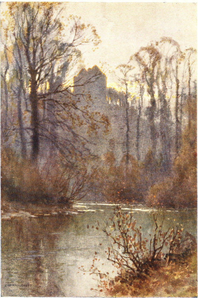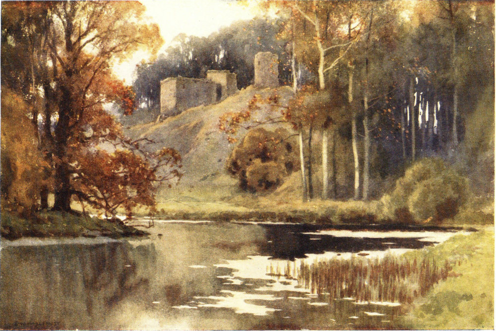 A few miles below Hawick, past Hornshole and past Denholm, the birthplace of John Leyden—the poet, the Oriental scholar, the friend of Scott, whose “brief and bright career” closed too soon in the Malay East—below “dark Ruberslaw” and the Dunion, which interposes its round-backed form between the “mining Rule” and the “crystal Jed”, and more directly under the Minto Crags and the Chesters moors, lies one of the loveliest bits on Teviot. Haughs and dells, green hills and wide sweeps of river spread around the fragments of Fatlips Castle, whose owner, a Turnbull, dwelt