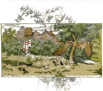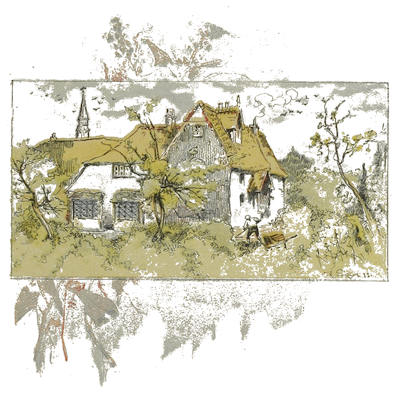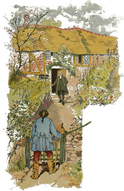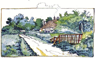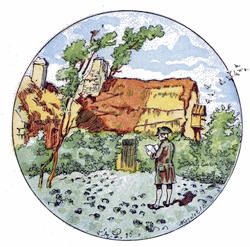 Notre petite habitation était située au pied d’une colline en pente douce, abritée par un beau taillis derrière et par une rivière bavarde devant; d’un côté une prairie, de l’autre une pelouse. Ma ferme consistait en vingt ares environ d’excellentes terres, pour lesquels j’avais donné cent livres de pot-de-vin à mon prédécesseur. Rien ne pouvait surpasser la propreté de mon petit enclos; les ormes et les haies vives avaient un aspect de beauté indescriptible. Ma maison ne se composait que d’un étage et était couverte en chaume, ce qui lui donnait un air de calme bien-être; les mur[27]s à l’intérieur étaient gentiment blanchis à la chaux, et mes filles entreprirent de les orner de tableaux de leur composition. La même pièce nous servait de salon et de cuisine, il est vrai; mais cela ne la rendait que plus chaude. D’ailleurs, comme elle était tenue avec la plus extrême propreté,—les plats, les assiettes et les cuivres bien écurés et disposés en rangées brillantes sur les étagères,—l’œil était agréablement récréé et n’éprouvait pas le besoin de meubles plus riches. Il y avait trois autres pièces, une pour ma femme et pour moi, une pour nos deux filles qui donnait dans la nôtre, et la troisième, avec deux lits, pour le reste des enfants.