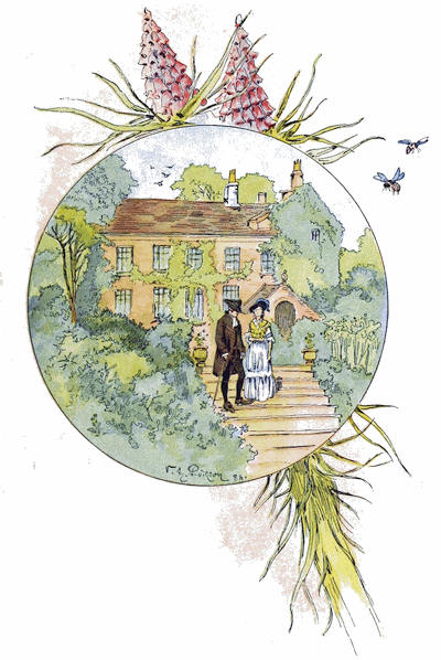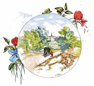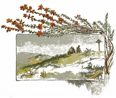 A UNE petite distance de la maison,[32] mon prédécesseur avait fait un banc, ombragé par une baie d’aubépine et de chèvrefeuille. Là, lorsque le temps était beau et notre travail fini de bonne heure, nous avions l’habitude de nous asseoir ensemble pour jouir d’un vaste paysage dans le calme du soir. Là aussi nous prenions le thé, qui était devenu maintenant un régal assez rare; et, comme nous n’en avions que de temps en temps, il répandait une joie nouvelle, et les préparatifs ne s’en faisaient pas avec peu d’empressement et de cérémonies. Dans ces occasions, nos deux petits nous faisaient toujours la lecture, et ils étaient régulièrement servis après que nous avions fini. Quelquefois, pour mettre de la variété dans nos plaisirs, les filles chantaient en s’accompagnant sur la guitare; pendant qu’elles formaient ainsi un petit concert, ma femme et moi nous descendions, en nous promenant, le champ en pente, embelli de campanules et de centaurées, causant de nos enfants avec délices et jouissant de la brise qui transportait à la fois la santé et l’harmonie.