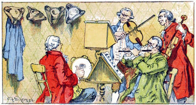 Comme nous nous levions avec le soleil, nous ne poursuivions jamais notre labeur après qu’il était couché; mais nous revenions à la maison, où la famille nous attendait avec des visages souriants, et où un foyer brillant et un bon feu étaient préparés pour nous recevoir. Et nous ne manquions pas de convives: quelquefois le fermier Flamborough, notre loquace voisin, et souvent le joueur de flûte aveugle, nous rendaient visite et goûtaient notre vin de groseille, pour la fabrication duquel nous n’avions perdu ni notre recette ni notre réputation. Ces braves gens avaient plusieurs moyens de faire apprécier leur compagnie; pendant que l’un jouait, l’autre chantait quelque[29] touchante ballade, «le Dernier Bonsoir de Johnny Armstrong», ou «la Cruauté de Barbara Allen». La soirée se terminait de la manière dont nous avions commencé la matinée: mes plus jeunes garçons étaient désignés pour lire les prières du jour; et celui qui lisait le plus haut, le plus distinctement et le mieux, devait avoir un sou le dimanche pour mettre dans le tronc des pauvres.