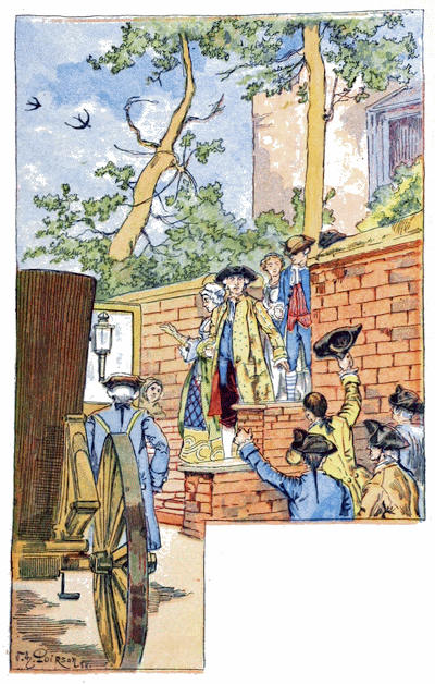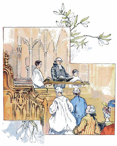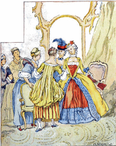 Le premier dimanche, en particulier, leur conduite servit à me mortifier. J’avais, la veille au soir, exprimé le désir que mes filles fussent habillées de bonne heure le lendemain, car j’ai toujours aimé être à l’église longtemps avant le reste de la congrégation. Elles obéirent ponctuellement à mes instructions; mais quand nous fûmes pour nous réunir au déjeuner du matin, voilà ma femme et mes filles qui descendent habillées avec toute leur ancienne splendeur, les cheveux plaqués de pommade, le visage marqueté de mouches à volonté, les jupes ramassées en paquet par derrière et bruissant à chaque mouvement. Je ne pus me retenir de sourire de leur vanité, surtout de celle de ma femme, de qui j’attendais plus de discrétion. Cependant, dans une circonstance si pressante, je ne trouvai d’autre ressource que d’ordonner à mon fils, d’un air important, de demander notre carrosse. Les filles furent stupéfaites du commandement; mais je le répétai avec plus de solennité qu’auparavant. «Sûrement, mon ami, vous plaisantez, s’écria ma femme. Nous pouvons parfaitement[30] aller à pied jusque-là; nous n’avons pas besoin de carrosse pour nous porter désormais.—Vous vous trompez, mon enfant, répliquai-je. Si, nous avons besoin de carrosse; car si nous allons à pied à l’église dans cet attirail, les enfants de la paroisse eux-mêmes feront des huées derrière nous.