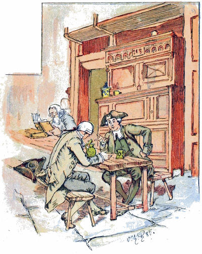 Après dîner, je portai mon toast ordinaire, l’Église. J’en fus remercié par le chapelain, car, déclara-t-il, l’Église était la seule maîtresse de ses affections. «Allons, Frank, dit le squire avec son sans-gêne accoutumé, parlez-nous sincèrement[45]; supposez d’un côté l’Église, votre maîtresse actuelle, en manches de linon, et de l’autre miss Sophia sans linon d’aucune espèce, pour laquelle seriez-vous?—Pour les deux, à coup sûr, s’écria le chapelain.—Parfait, Frank! reprit le squire. Que ce verre m’étouffe si une belle fille ne vaut pas toute la cléricature de la création. Car que sont dîmes et simagrées? Imposture, mensonge damné, tout cela! Et je puis le prouver.—Je le voudrais, s’écria mon fils Moïse; et je pense que je serais capable de vous répondre.—Très bien, monsieur, repartit le squire qui, du premier coup, flaira son homme et cligna de l’œil au reste de la compagnie pour nous préparer au jeu. Si vous désirez argumenter froidement sur ce sujet, je suis prêt à accepter le défi. Et d’abord, en êtes-vous pour le traiter analogiquement ou dialogiquement—J’en suis pour le traiter raisonnablement, s’écria Moïse, tout heureux qu’on lui permît de discuter.—Bon encore, reprit le squire. Et pour commencer par le commencement, j’espère que vous ne nierez pas que tout ce qui est, est. Si vous ne m’accordez pas cela, je ne saurais aller plus loin.—Mais, répondit Moïse, je crois que je peux vous accorder cela et en tirer bon parti.—J’espère aussi, reprit l’autre, que vous accorderez qu’une partie est moindre que le tout.—J’accorde cela aussi, s’écria Moïse; ce n’est que juste et raisonnable.