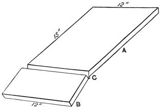 At the top and bottom of the back portions of the easel are projecting strips with a rabbet deep enough to allow the front or copying board to slide sideways, but not loosely; this front board should be painted a dead black with white lines in the centre from top to bottom and from side to side, said lines being divided into inches and half inches, from the centre, so that the drawing may be pinned in the exact centre without trouble.