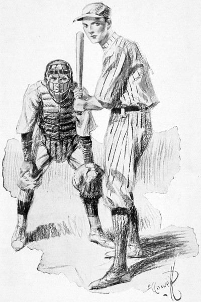 Two out, a man on second and a run needed to break the tie! A hit, nothing less, was expected of Wayne, and he realised it. At first the thought was horribly disturbing. He heard the applause from the stands, less hearty this time, since he had failed them before, and it added to his tremors. He felt himself absurdly young and inexperienced and—yes, actually scared! He wished himself back on the bench, any place save where he stood, facing the pitcher with the muscles at the back of his legs trembling! They were talking to him and at him, his own side and the enemy, but what they said was confused and meaningless, and it was not until the Damascus[298] catcher called down to his pitcher to “Fan the kid, Walt!” that any words registered on his brain.