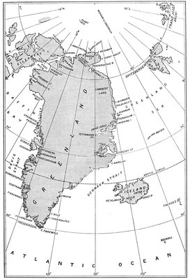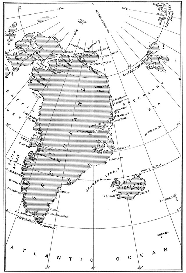 Hans Egede—The house of Eric the Red—Nansen's crossing of Greenland—Nansen and Sverdrup row to Ny Herrnhut—Nordenskiöld's journeys—Berggren's discovery—Nordenskiöld on the inland ice—Glaciers and icebergs—Diatoms and whales—Edward Whymper's expedition—Greenland in Miocene times—Graah—Scoresby—Ryder—The Germania and Hansa—The Duke of Orleans—The Eskimos of Clavering Island—Franz Josef Fiord—The drift of the Hansa—The Greely expedition—The International Polar stations—Voyage of the Proteus—Lockwood reaches 83° 24´—Greely's wagon—The Eskimo house at Lake Hazen—Greely Relief expeditions—The rescue of Greely—Peary—His journey to Independence Bay—His four years' expedition—Reaches 84° 17´—His Polar expedition of 1905—The Roosevelt—The voyage to Cape Sheridan—Plan of the northern advance—Peary reaches 87° 6´—Moxon's mariner.