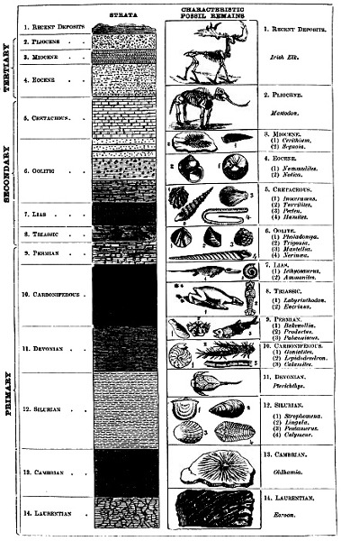 | The Eternal Strife between Water and Fire—Strata of Aqueous Origin—Tabular View of their Chronological Succession—Enormous Time required for their Formation—Igneous Action—Metamorphic Rocks—Upheaval and Depression—-Fossils—Uninterrupted Succession of Organic Life | Page 1 |