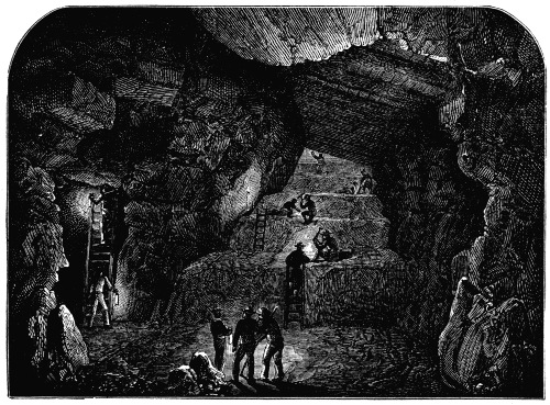 There lie concealed the mysterious laboratories of fire, which reveal to us their existence in earthquakes and volcanic explosions. There, in successive strata, repose the remains of extinct animals and plants. There many a wonderful cavern may be seen, with its fantastic stalactites, its rushing waters, and its noble halls. There have been deposited the rich stores of mineral wealth—the metals, the coals, the salt, the sulphur, &c.—without whose aid man would never have been more than a savage.