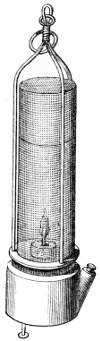 40. Recent improvements have done much to render the Davy lamp a more perfect instrument of safety. These more or less insure increased illumination, prevention of bad usage by locking, and more perfect combustion. By an ingenious contrivance, one of these improved lamps cannot be opened without previous extinguishment.