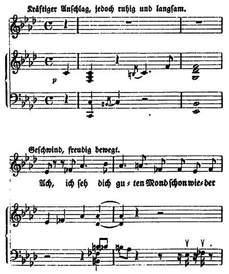 Abends bei der Lampe, und dem trauten Gespräch im Familienkreis, ihm Sehnsucht die Brust durchgreift und er aufspringt mit dem heißen Wunsch: Ach! Laßt mich eine Gewalttat verüben!