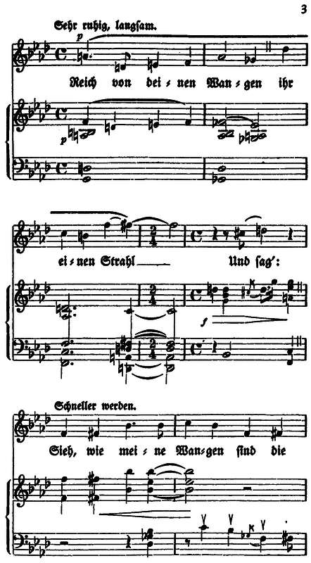 Fort fliegt sie; führt er die Hand an die Stirn, läßt sie daran herunter und über die Wange gleiten, und die Augen schlagen auf.