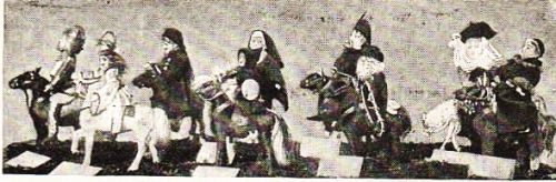 Whoever had read Chaucer's enchanting Canterbury Tales could not fail to recognize in one quaintly attired group the pilgrims on their way to Canterbury, with Chancer riding in their midst. The stately knight was at the head; following him was the "younge squire," and "short was his gown with sleeves long and wide"; and bringing up the rear was the fat and jolly priest. Having seen this merry company, one longed to hear again the charming tales they told at the old Tabard Inn in Canterbury. Next to this Old-World group was what might be called nineteenth-century pilgrims—a band of Salvation-Army lasses marching to the sound of drum, waving their banners, and shouting their "War-Cry."