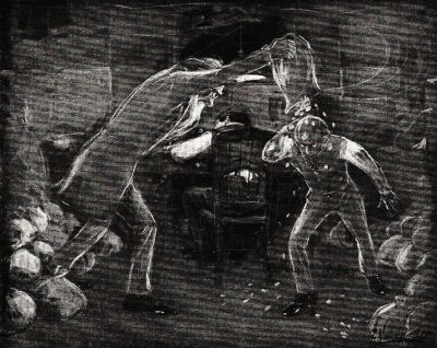 The Captain and I soon overcame the water famine, however, by constructing a distiller from a rusty musket barrel and the remains of an old copper boiler.