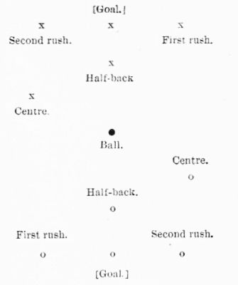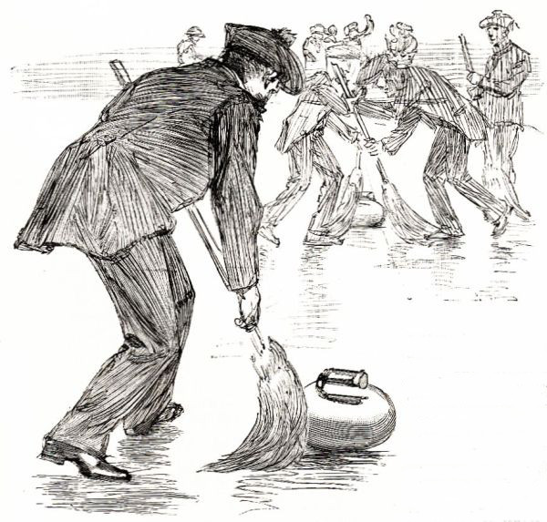 Two groups of special interest to the boys—for even boys condescended to visit the doll show—were the football game and the bowling-alley. For the football a ground had been marked off on green baize, and here a lively scrimmage was going on; the make-up of the players was exact, even to the long hair. One poor fellow, who had doubtless been in the thickest of the "rush," was limping off the ground, his clothes torn and muddy, his face stained with blood, and his football hair standing out in every direction. In direct contrast to this scrambling group were the tenpin-players in the bowling-alley. Two were playing—for it was a double alley—while the others stood in order, watching the game and waiting their turn at the bowls, each of them as silent[Pg 281] and as grave as the famous tenpin-players of the Kaatskills.