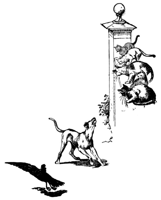 "That's the crow's cat call," she murmured; "but cats could never get into that kennel."
