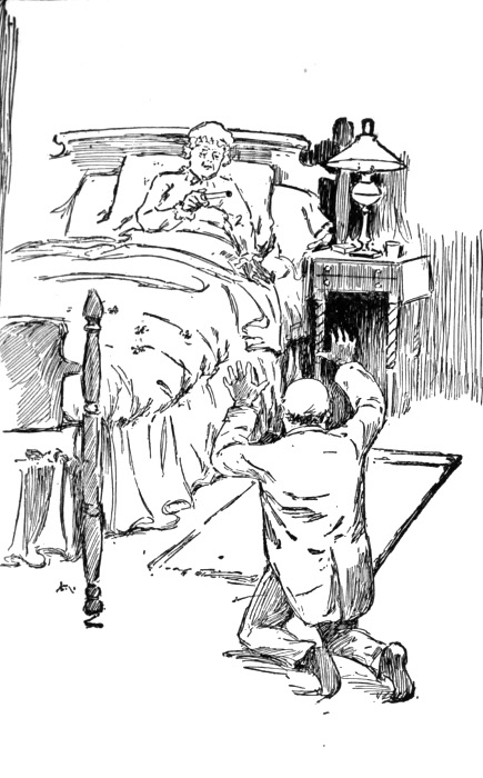 "No, child," she replied. Then she reached out her hand, scratched a match, and lighted the big lamp that stood on the table by her bed.