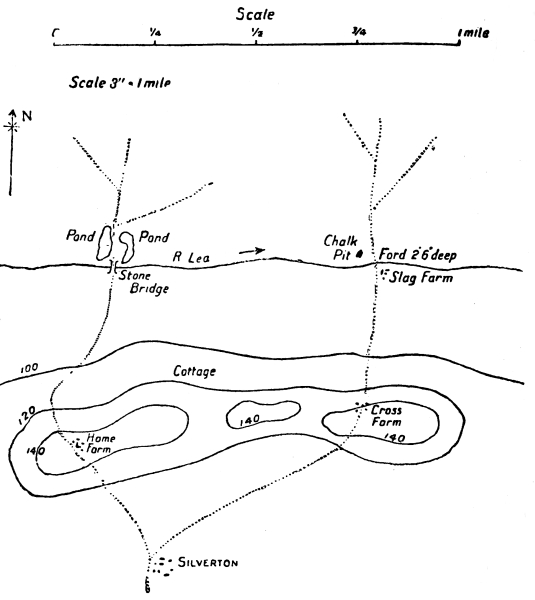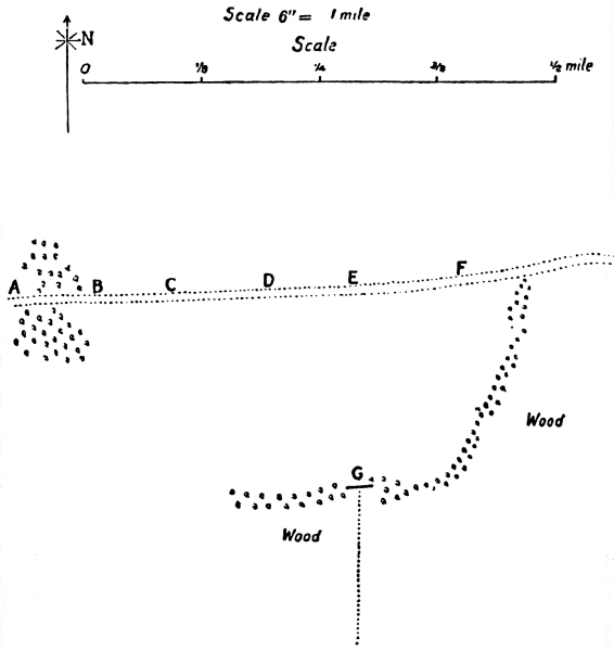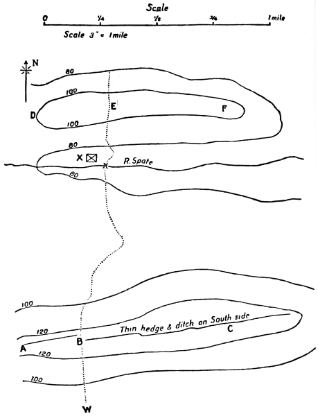From the contours on the sketch, it is evident that the ground is convex in formation, that is, that it is nearly flat between X and H¹, but that it slopes rapidly between H¹ and H, between B¹ and B, and between C¹ and C.