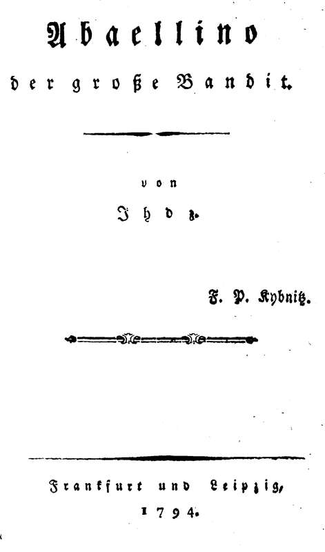 „He!“ rief er mit heisrer, grölzender Stimme: „kennt ihr noch den Abaellino, hier ist er, mit Leib und Seele ist er hier, gnädiger Herr, um seine Braut einzuhohlen!“