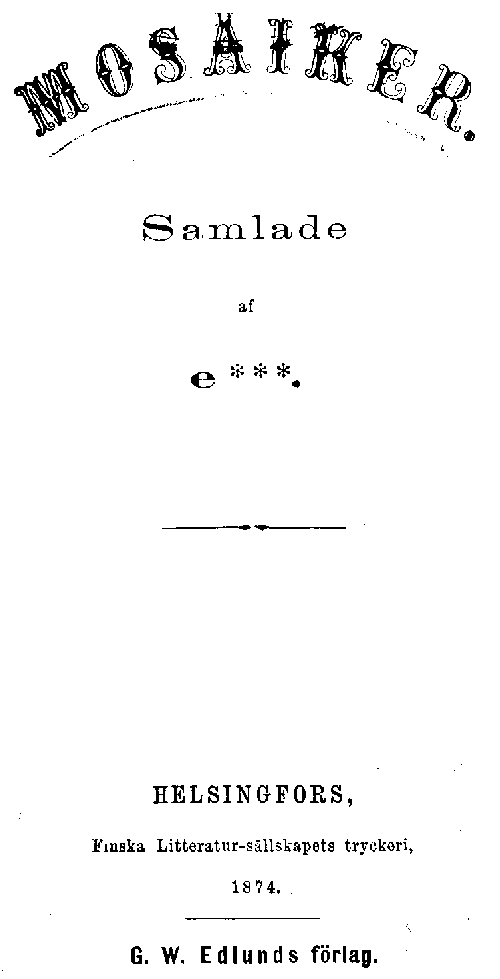 (Samlarinnan af dessa „mosaiker“ ber skalden ödmjukt om tillgift, för att hon utan hans vetskap tillegnat sig följande vackra dikt, som icke finnes i hans samlade arbeten.)