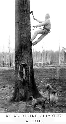 An aboriginal climbing a tree |