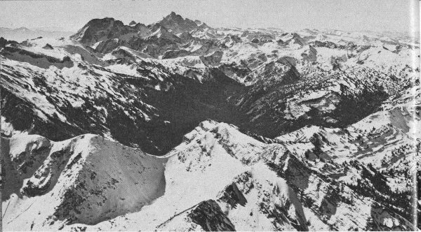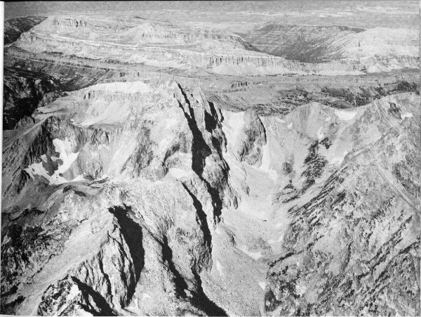 Of all those who explore the high country, it is the mountaineer who has perhaps the greatest opportunity to appreciate its geologic story. Indeed, the success of his climb and his very life may depend on an intuitive grasp of the mountain geology and the processes that shaped the peaks. He observes the most intimate details—the inclination of the joints and fractures, which gullies are swept by falling rocks, which projecting knobs are firm, and which cracks will safely take a piton. To many climbers the ascent of a peak is a challenge to technical competence, endurance, and courage, but to those endowed with curiosity and a sharp eye it can be much more. As he stands shoulder to shoulder with the clouds on some windswept peak, such as the Grand Teton, with the awesome panorama dropping away on all sides, he can hardly avoid asking how this came to be. What does the mountaineer see that inspires this curiosity? From the very first glance, it is apparent that the scenes to the north, south, east, and west are startlingly different.