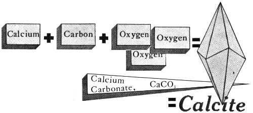 A mineral can be compared to a word of our language. We combine letters to form a word, and nature combines certain chemical elements to form each particular mineral. For example, calcite, a mineral that is abundant in Texas, is always made up of the same proportions of the same three elements: calcium, carbon, and oxygen.