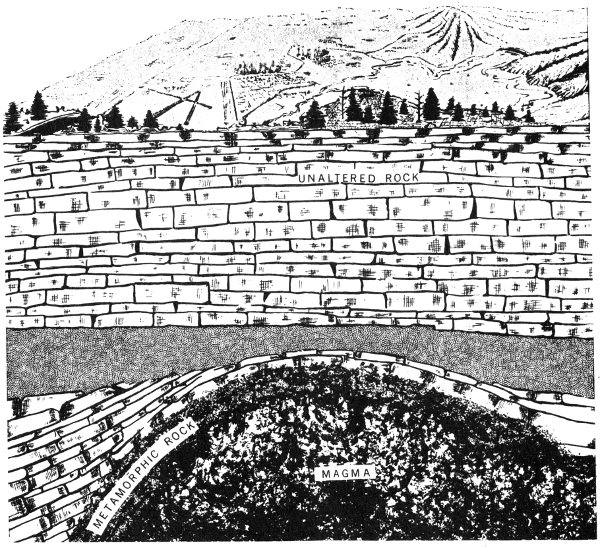 Rocks and minerals are familiar objects to all of us. We pick up attractive or unusual pebbles for our collections, we admire rocky mountain peaks, we speak of the mineral resources of our State and Nation. Rocks and minerals enter, either directly or indirectly, into our daily living. From them come the soils in which grow the grains, the fruits, and the vegetables for our food, the trees for our lumber, and the flowers for our pleasure. The iron, copper, lead, gold, silver, and manganese, the sulfur and salt, the clays and building stones, and the other metals and nonmetals that we require for our way of living were once a part of the earth’s crust.