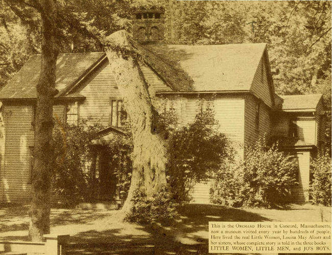 This is the Orchard House in Concord, Massachusetts, now a museum visited every year by hundreds of people. Here lived the real Little Women, Louisa May Alcott and her sisters, whose complete story is told in the three books—LITTLE WOMEN, LITTLE MEN, and JO’S BOYS.