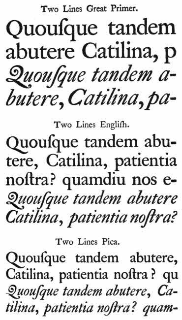 | 2. PAGE FROM WILLIAM CASLON’S “SPECIMEN OF PRINTING TYPES.” (LONDON, 1766) | To face p. 98 |