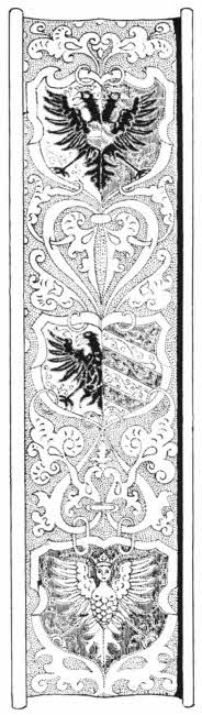 The Nicene creed was cut in silver by order of Pope Leo III., and in the East strips of metal have constantly been substituted for the long thin pieces of palm leaf which formed the normal books. The metal leaves are found of gold, silver, or gilded copper particularly. The plates are quite thin, and the characters upon them are generally engraved, but sometimes they are chased with tracer and hammer. Such records are not only very permanent but they are also very decorative. The modern engraving of inscriptions on metal has mainly found refuge in monumental brasses, and in this case the letterings are usually run in with some pigment.