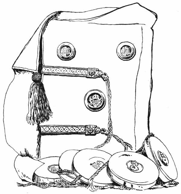 Something analogous to the Peruvian knots is to be[13] found in the tasselled and knotted fringes which adorn the ceremonial hats of dignitaries in the Romish church.