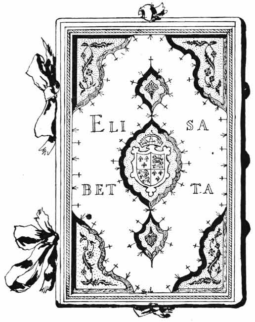 A remarkable style, known as “à la Fanfare,” became common in France about the end of the sixteenth century. They are generally attributed to Clovis Eve, who was Relieur du Roy (1596), but there is really no authority for such attribution. The style is a beautiful one, and consists of interlaced fillets enclosing graceful sprays of laurel or palm, and arabesque curves. Some of the finest examples were bound for J. A. de Thou, the historian, and bear his arms, a chevron between three gadflies, as a centre ornament.