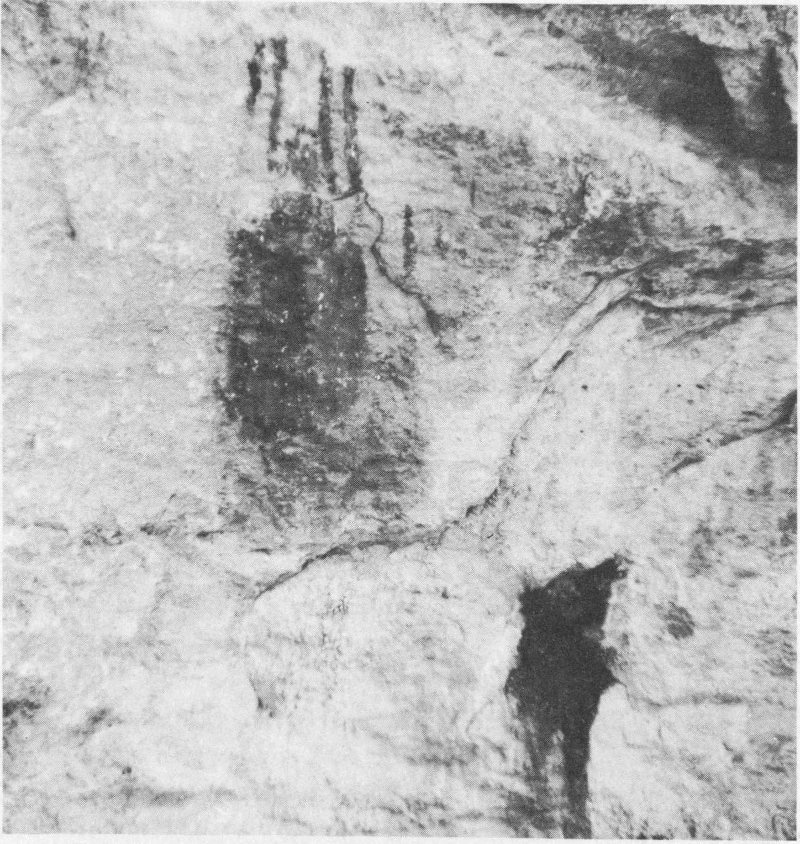 Quite probably all of the mentioned Indian groups knew of the entrance to the Carlsbad Caverns. However, physical evidence that they did was left by only one group—the Basketmakers. On the south wall of the natural entrance may be seen pictographs or paintings of some weather worn figures in red (ocher) and black (probably carbon). On the surface just above the cave mouth is a distinct “midden circle” or cooking pit. Many of these midden circles are found throughout the entire area and will be explained more fully in the chapter on the Carlsbad Basketmakers.