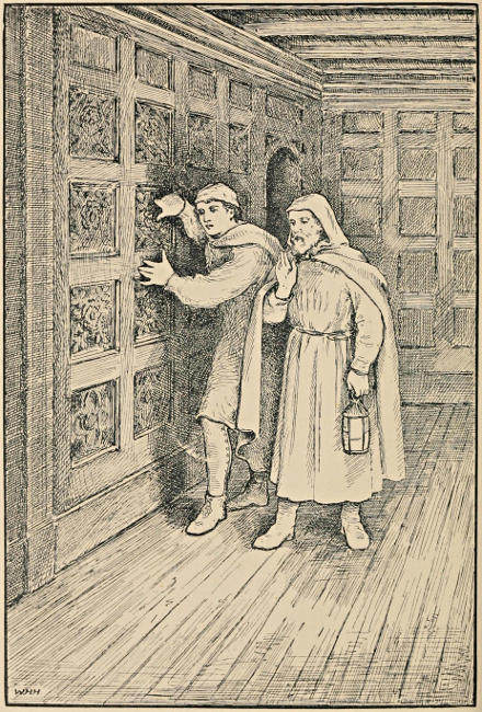 “Oh,” said I, “I forgot to mention that in Queen Mary’s reign, Cuthbert paid a visit to England in the train of the French Ambassador, Monsieur de Noailles, and found an opportunity of revealing the secret to the Queen. He was sent with some others to Glastonbury, and there they found the mouldering skeleton of Sir John Redfyrne, keeping watch over the chest.”